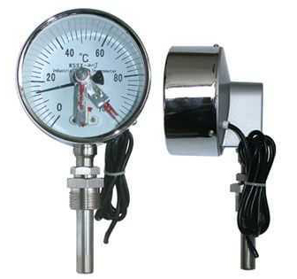 電接點(diǎn)雙金屬溫度計(jì)是利用溫度變化時(shí)帶動(dòng)觸點(diǎn)變化,當(dāng)其與上下限觸點(diǎn)接觸或斷開的同時(shí),使電路中的繼電器動(dòng)作,從而自動(dòng)控制和報(bào)警。